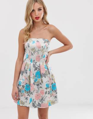 Chi Chi London Plus Skater Dress With V Back In Floral Print Asos