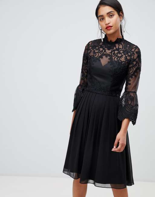 Chi Chi London Lace Skater Dress In Black Asos