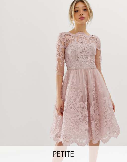 Chi Chi London Petite Premium Lace Midi Dress With 3 4 Sleeve In Mink Asos